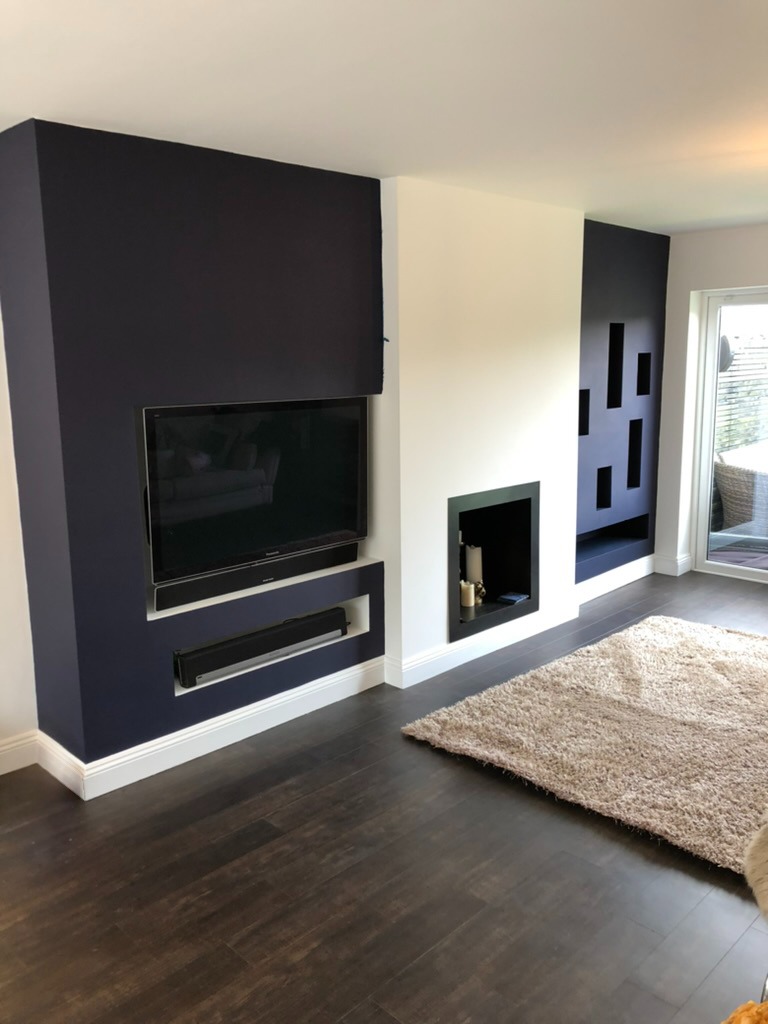 Our work includes feature walls, wallpapering, full room redecorations and bespoke finishes.